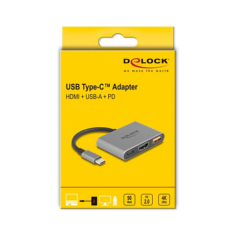 Adapter DELOCK USB-C with HDMI 4K + USB-A + USB-C PD / 90 W – Gri