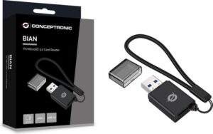 Conceptronic 4-in-1 Card Reader / USB-A 3.0 – Zezë është adapter praktik për leximin dhe shkruarjen e kartelave të memories.