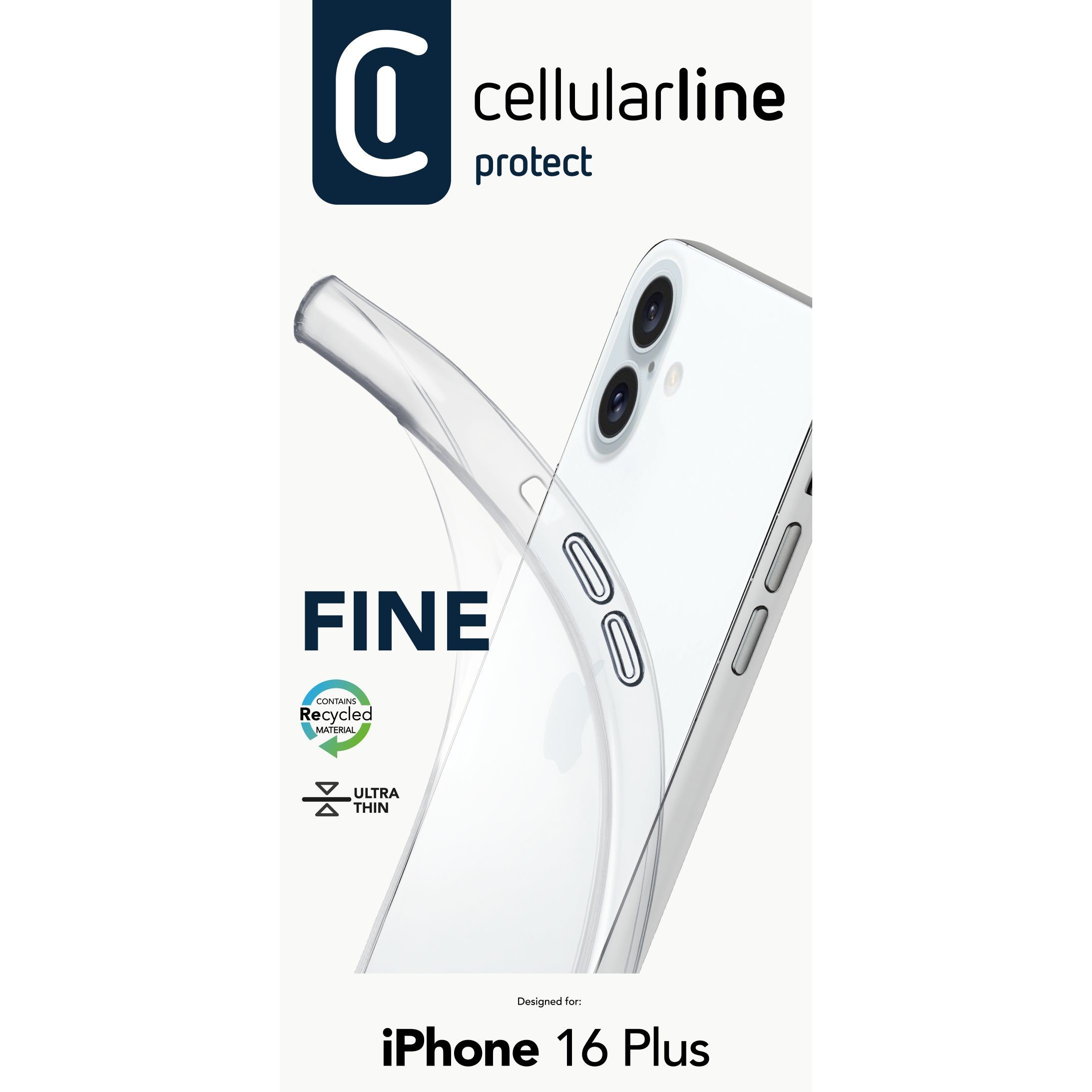 Kutia Cellularline Fine Case për iPhone 16 Plus është mbrojtëse transparente ultra e hollë që ruan dizajnin origjinal të pajisjes Apple.