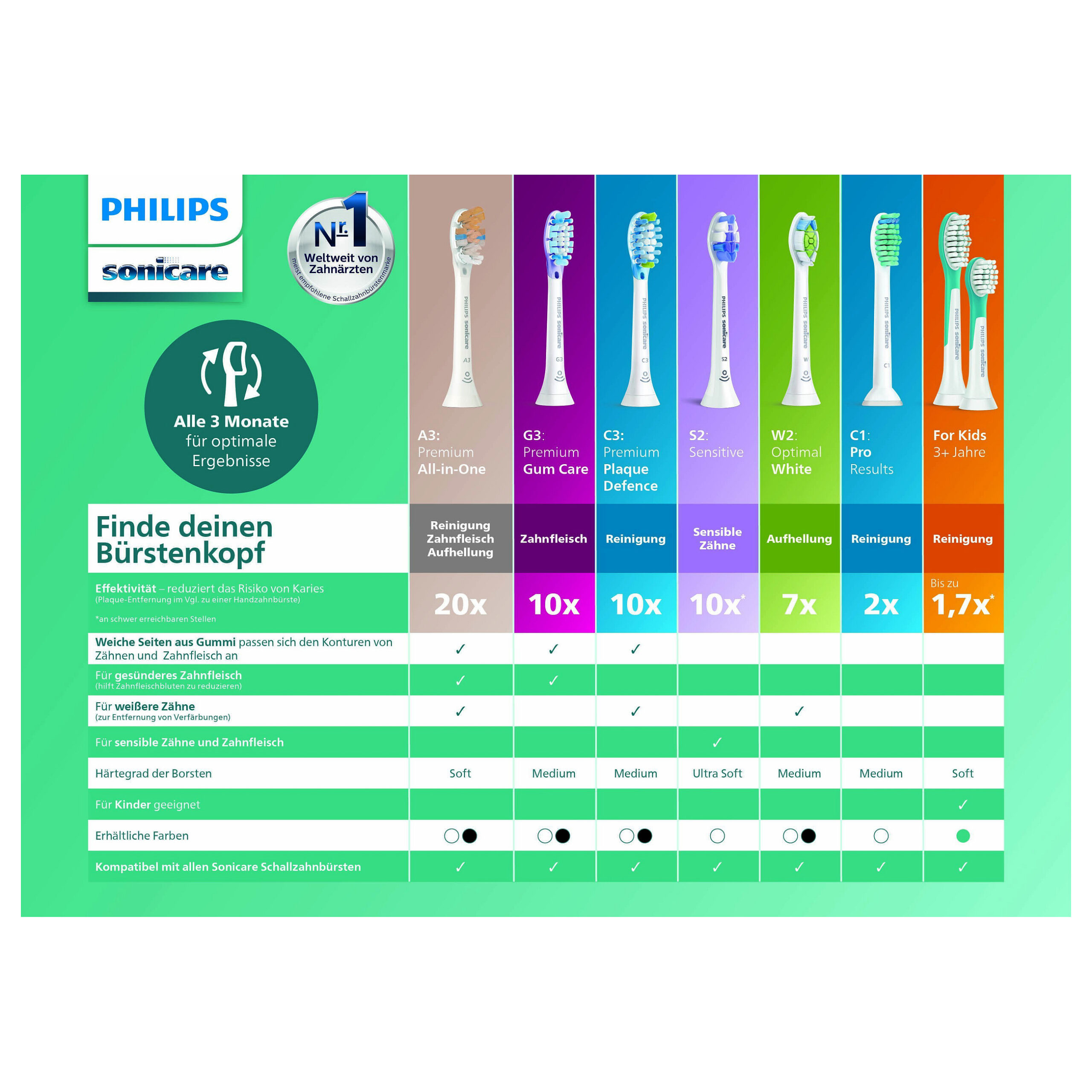 Përshtaten me furçat Philips Sonicare dhe kontribuojnë në shëndetin oral afatgjatë, duke siguruar pastrim të plotë dhe ndjesi të freskët çdo ditë.