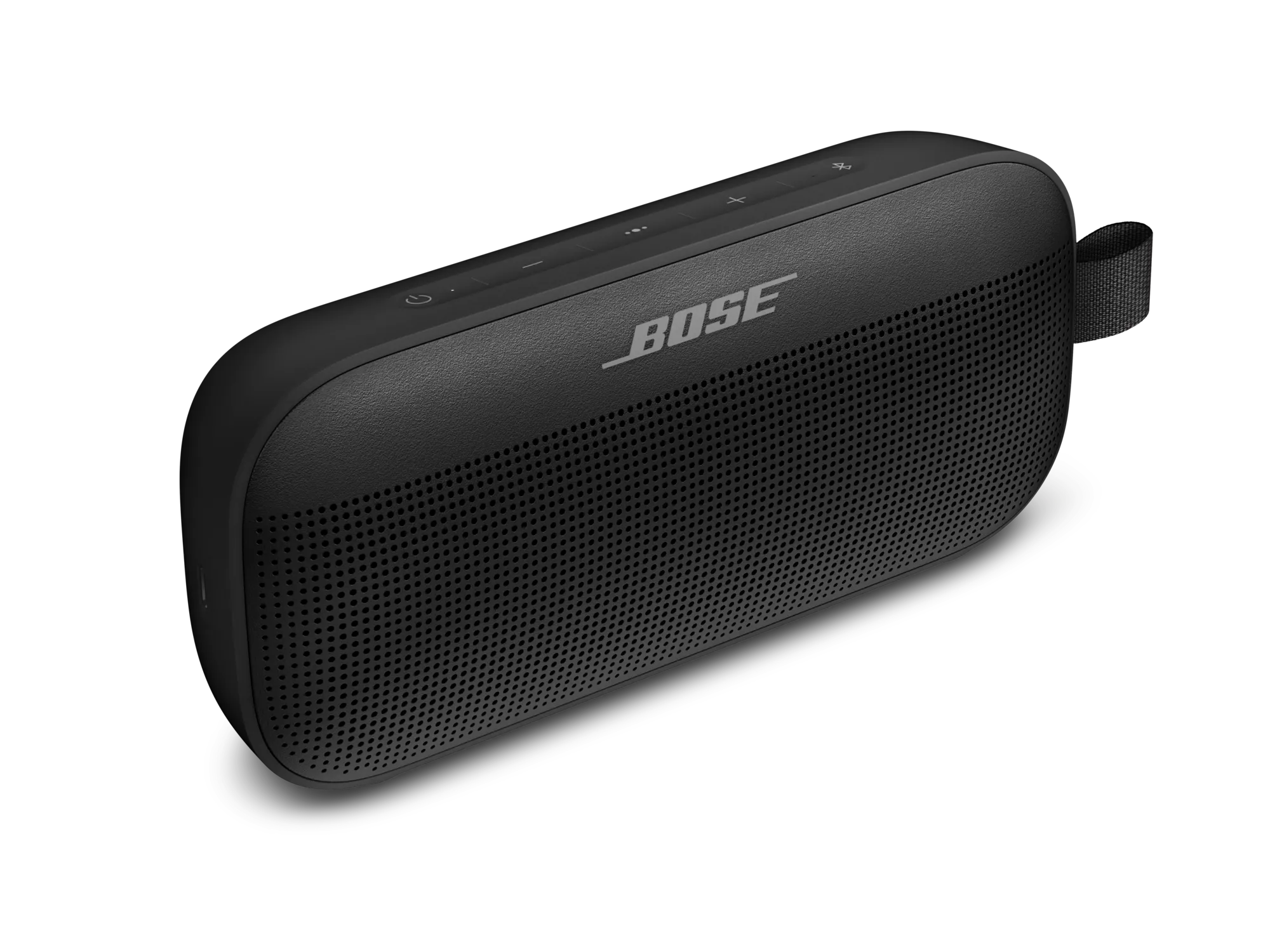 Bose SoundLink Flex II është një altoparlant portativ Bluetooth me dizajn elegant në ngjyrë të zezë, i ndërtuar për të ofruar tingull të fuqishëm dhe të balancuar në çdo ambient.