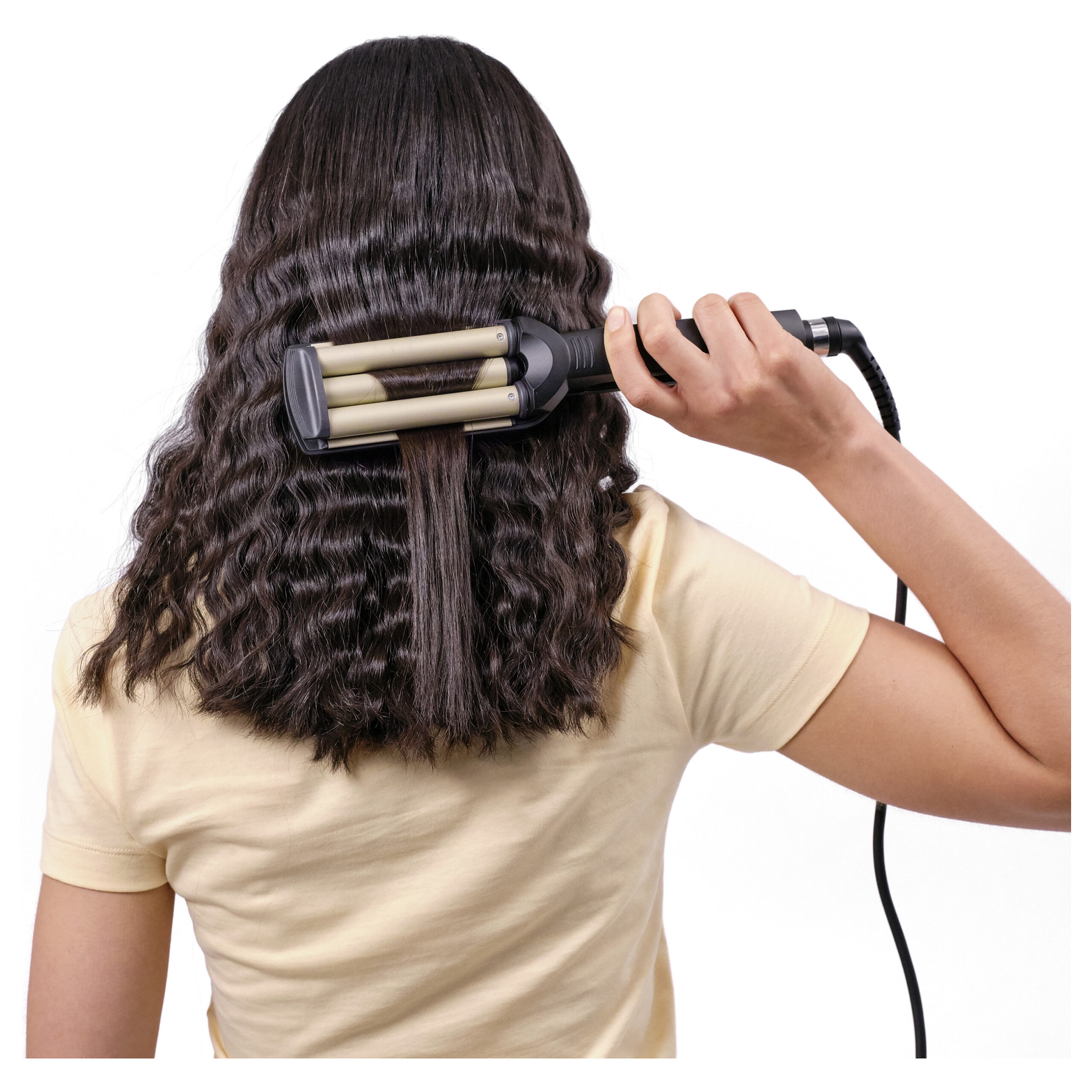 Ajo krijon valë të bukura dhe të qëndrueshme, duke lejuar stilim të shpejtë dhe të lehtë në shtëpi.Pajisja ofron kontroll të temperaturës dhe performancë të qëndrueshme, duke mbrojtur flokët nga nxehtësia e tepërt.