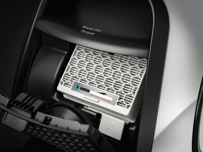 FshesaMiele Boost CX1 Parquet PowerLine për pastrim efikas të dyshemeve të forta dhe tapeteve të ulëta.