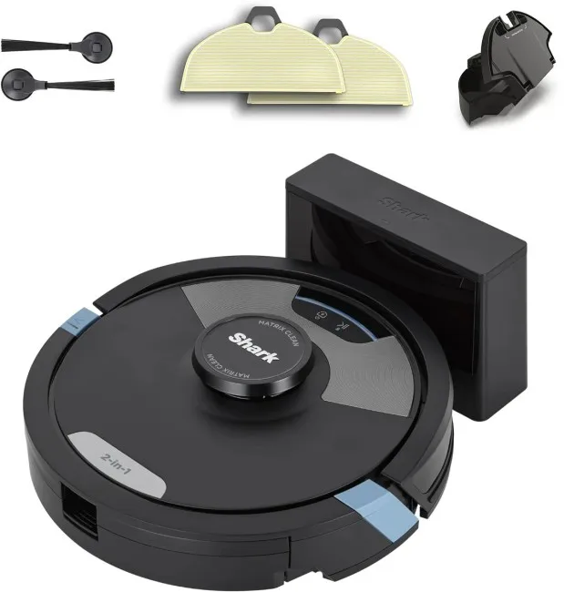 Robot fshesë Shark Matrix Plus RV2620WDUK kombinon pastrimin me furçë dhe mop për dysheme të forta dhe tapete.