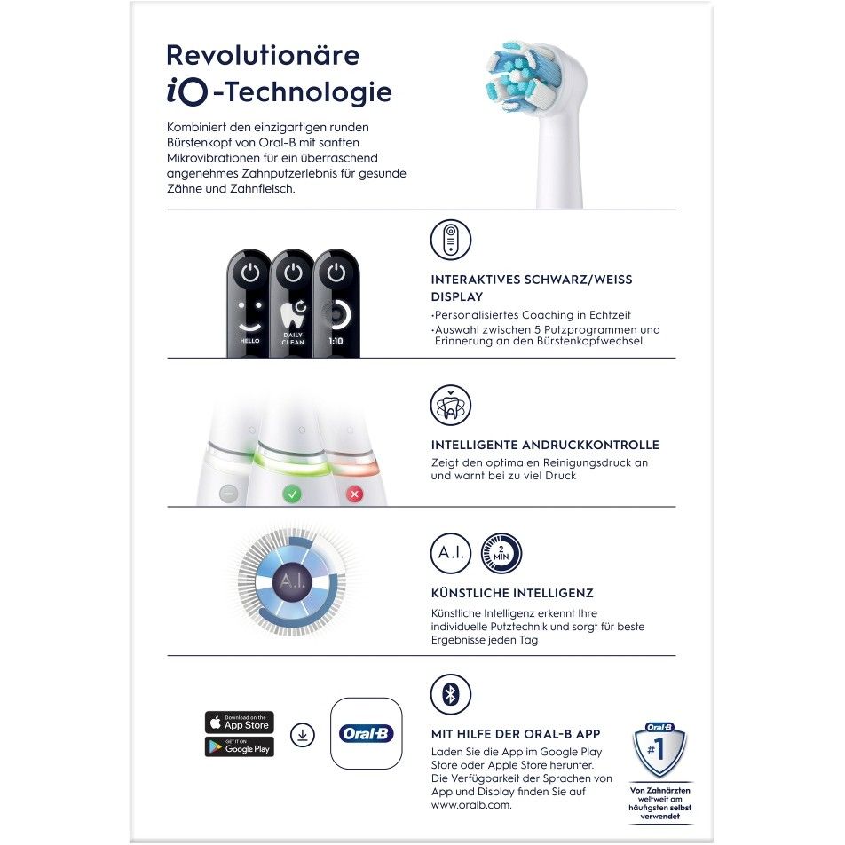 Ekrani i integruar dhe lidhja me aplikacionin përmes Bluetooth ju ndihmojnë të monitoroni kohën e larjes, të merrni paralajmërime për ndërrim koke furçe dhe të ndjekni rutinën e pastrimit.