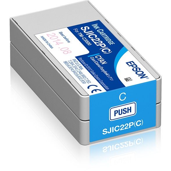 Epson SJIC22P(C) / C33S020602 është bojë origjinale në ngjyrë blu (Cyan), e dizajnuar për printerët industrialë Epson me performancë të lartë.