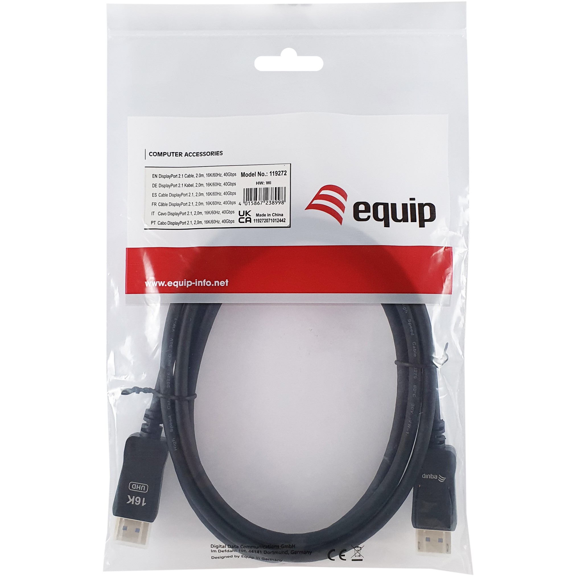 Kabllo DisplayPort Equip 2.1 (St/St) 2.00m / 16K/60Hz / HDCP / Premium – Hiri