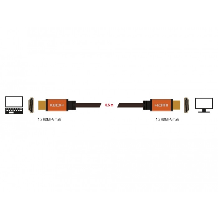 Kabllo HDMI DELOCK Ultra High Speed / 48Gbps / 8K / 60Hz / St–St / 0.5m – Zezë