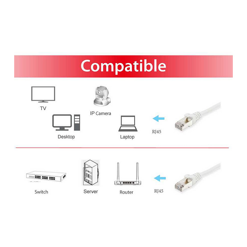 Kabllo për rrjet Equip Patch Cable Cat6 S/FTP 2×RJ45 / 25 m – Bardhë