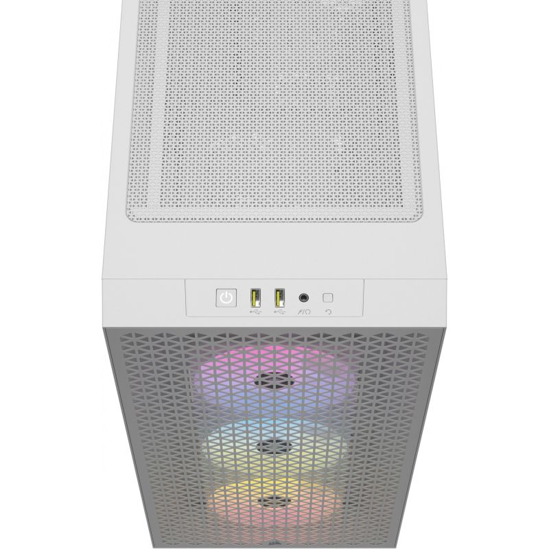Kasë CORSAIR 3000D RGB Airflow White Midi Tower ATX Gaming Case – e bardhë është projektuar për qarkullim maksimal të ajrit falë panelit të përparmë Airflow dhe strukturës së hapur të ventilimit.