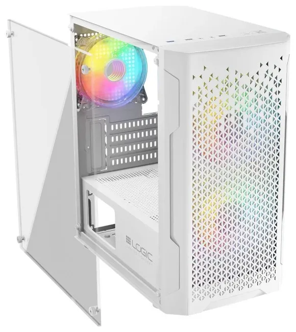 Kasë Logic Aramis ARGB – Bardhë është një kasë kompjuterike me dizajn modern dhe ndriçim ARGB të integruar.