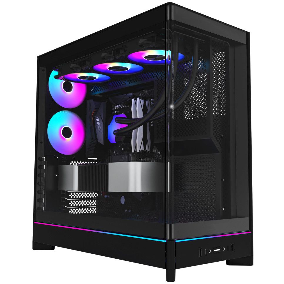 Panelet e ventilimit dhe dizajni i optimizuar garantojnë rrjedhje efikase të ajrit, ndërsa dritarja anësore prej xhami të temperuar shton elegancë vizuale dhe lejon ekspozimin e sistemit të brendshëm.