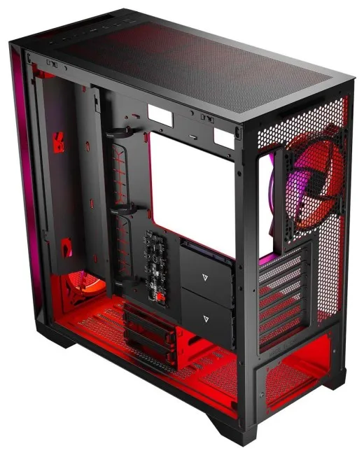 Kasë Modecom Volcano Expanse S Apex ARGB në ngjyrë zezë ofron dizajn modern me ndriçim ARGB të integruar, që i jep pamje dinamike çdo sistemi kompjuterik.