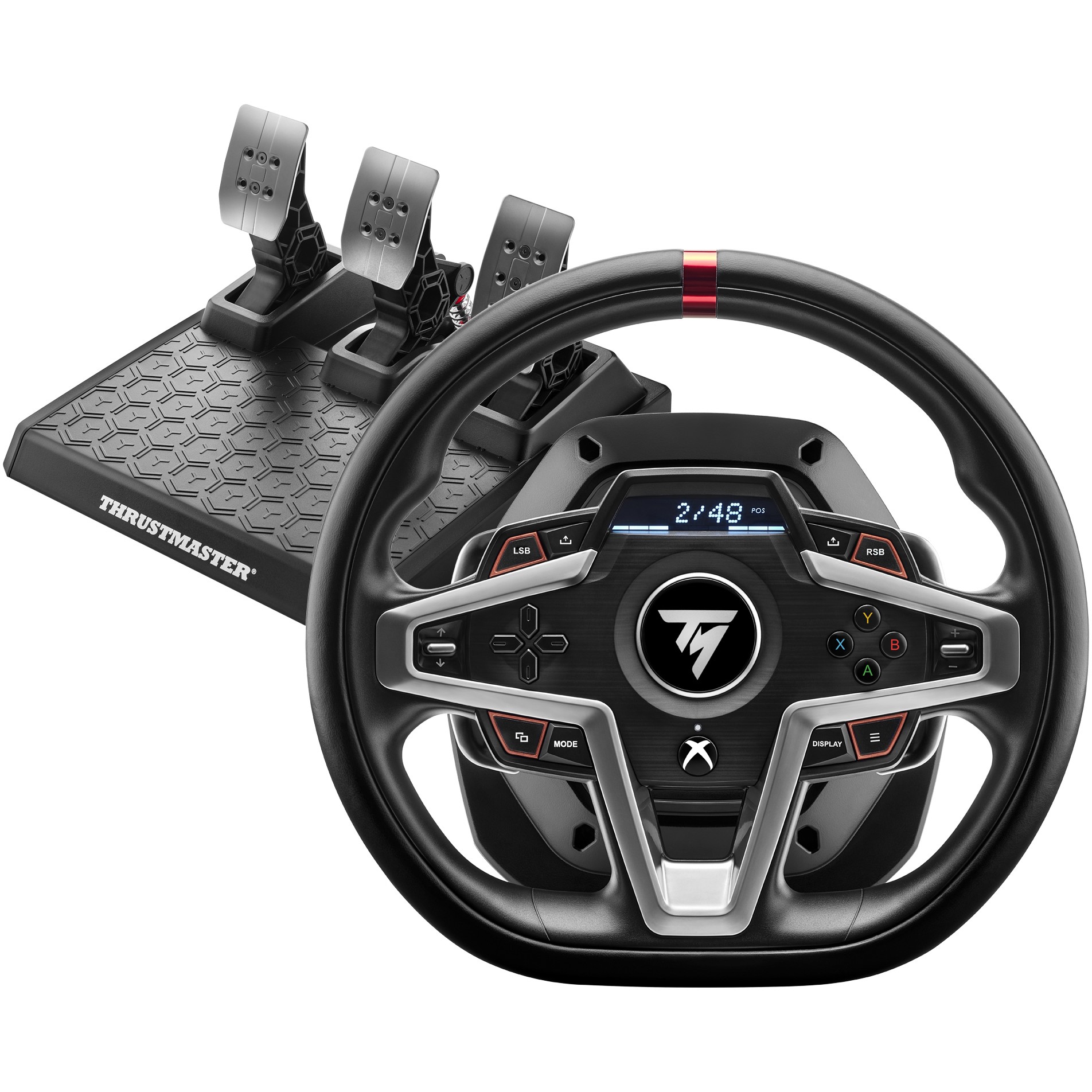 Thrustmaster T248X është një timon garash me Force Feedback për Xbox dhe PC, i dizajnuar për të ofruar ndjeshmëri të fuqishme dhe kontroll të saktë në simulime.