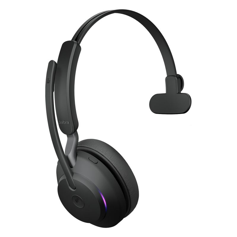 Jabra Evolve2 65 Mono MS + Link 380a – Zezë janë kufje profesionale pa kabllo, të dizajnuara për komunikim të qartë dhe produktivitet maksimal në zyrë.
