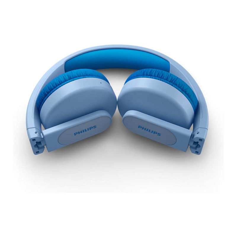 Kufjet pa kabllo Philips TAK4206BL/00 – Blu janë të dizajnuara për fëmijë, duke ofruar tingull të pastër dhe volum të kufizuar për mbrojtje të dëgjimit.