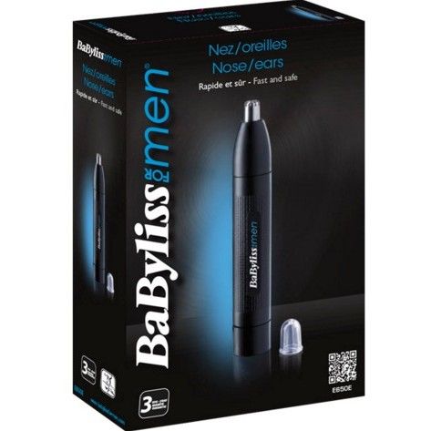 BaByliss E650E është trimer praktik për heqjen e qimeve në hundë dhe veshë, me sistem rrotullues të tehut për prerje të sigurt dhe pa dhimbje.