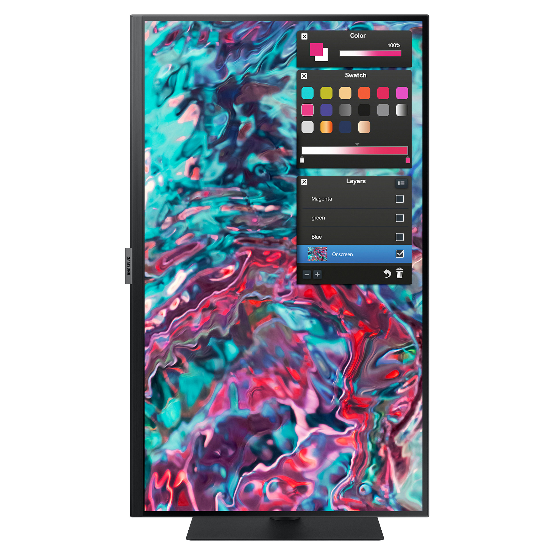 Dizajni i zi modern kombinon elegancën me funksionalitetin, duke e bërë monitorin të përshtatshëm për zyre ose studio.