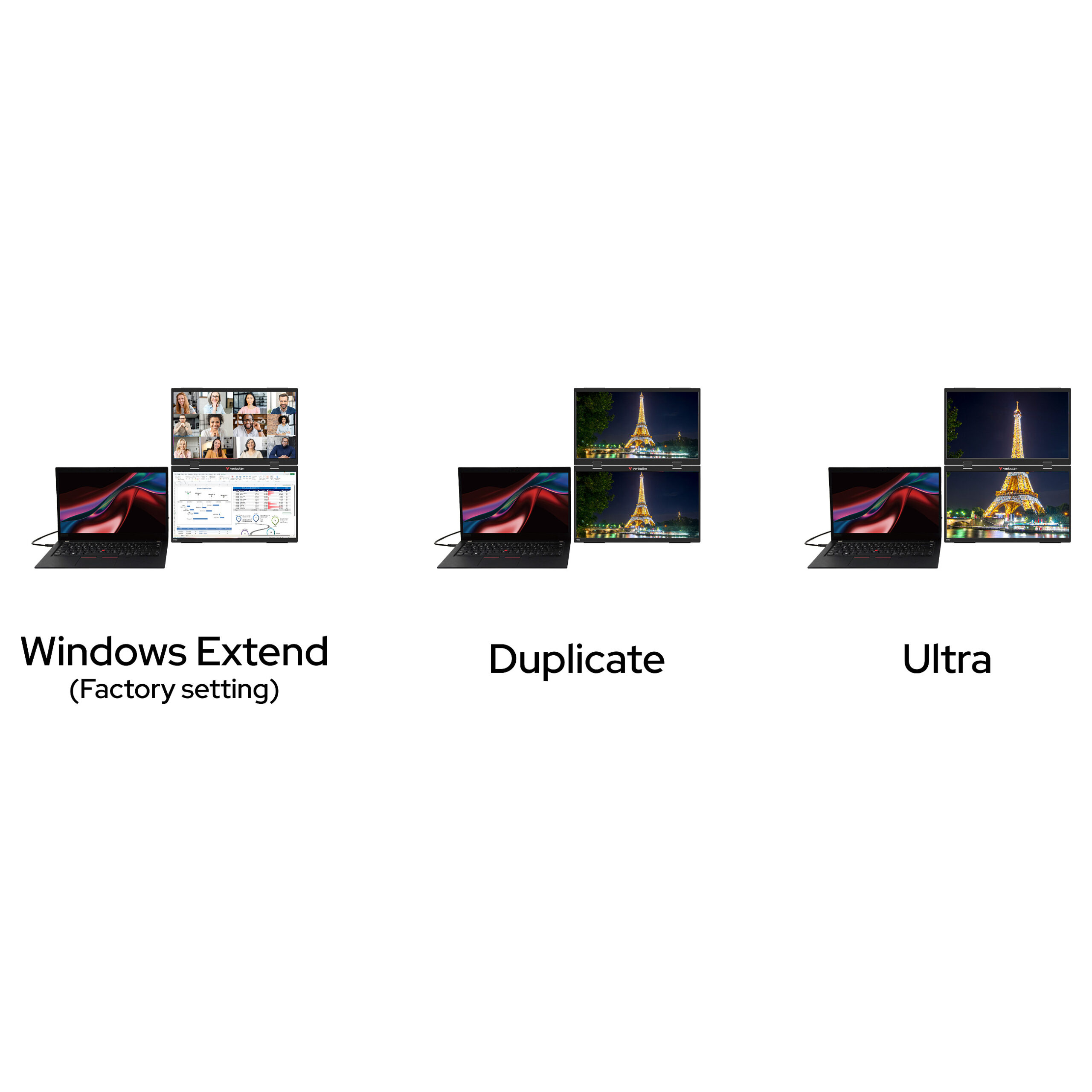 Ky monitor Verbatim Portable Dual me ekran 15.6″ Full HD IPS ofron ngjyra të gjalla dhe kënde të gjera shikimi, duke e bërë të përshtatshëm për punë profesionale, mësim online ose prezantime.