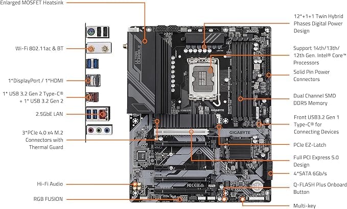 Motherboard-i Gigabyte Z790 D është një zgjedhje ideale për entuziastët e teknologjisë dhe lojtarët që kërkojnë performancë të lartë dhe stabilitet. Dizajnuar për të mbështetur komponentët më të fundit dhe për të siguruar përmirësime të jashtëzakonshme në shpejtësinë dhe efikasitetin e sistemit tuaj, kjo motherboard ofron një platformë të fortë dhe të besueshme për ndërtimin e një sistemi të avancuar. Me cilësi të lartë ndërtimi dhe mbështetje për teknologjitë më të fundit, Gigabyte Z790 D është e përkryer për ata që duan të ndërtojnë një PC të fuqishëm dhe të qëndrueshëm për lojëra, punë kreative, apo detyra të përditshme.