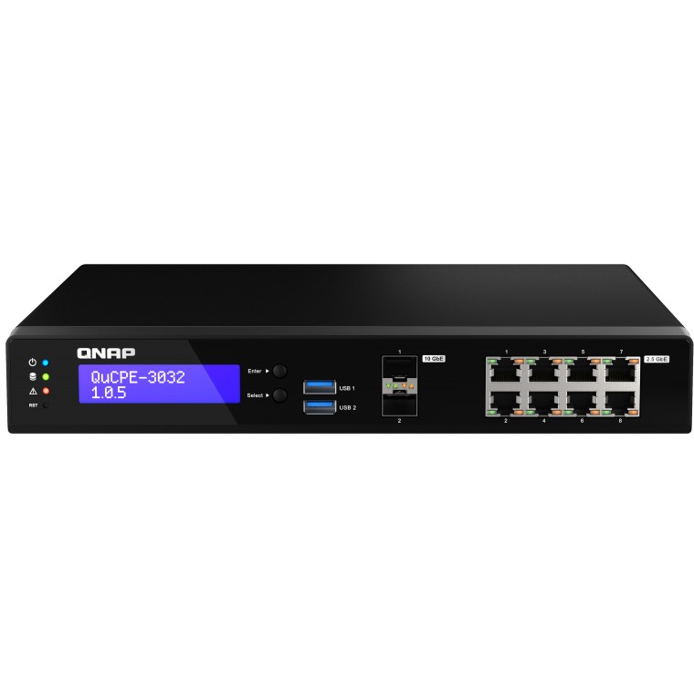 NAS QNAP QuCPE‑3032‑C3558R‑8G / Intel Atom C3558R / 8×2.5GbE RJ45, 2x10GbE SFP+ / 2xM.2 NVMe / 60W PSU