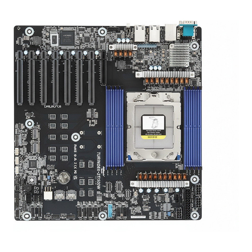 Pllaka amë ASRock TurinD8X-2T/500W është një motherboard profesional për servera dhe workstation të nivelit enterprise, i bazuar në platformën AMD SP5 (EPYC).
