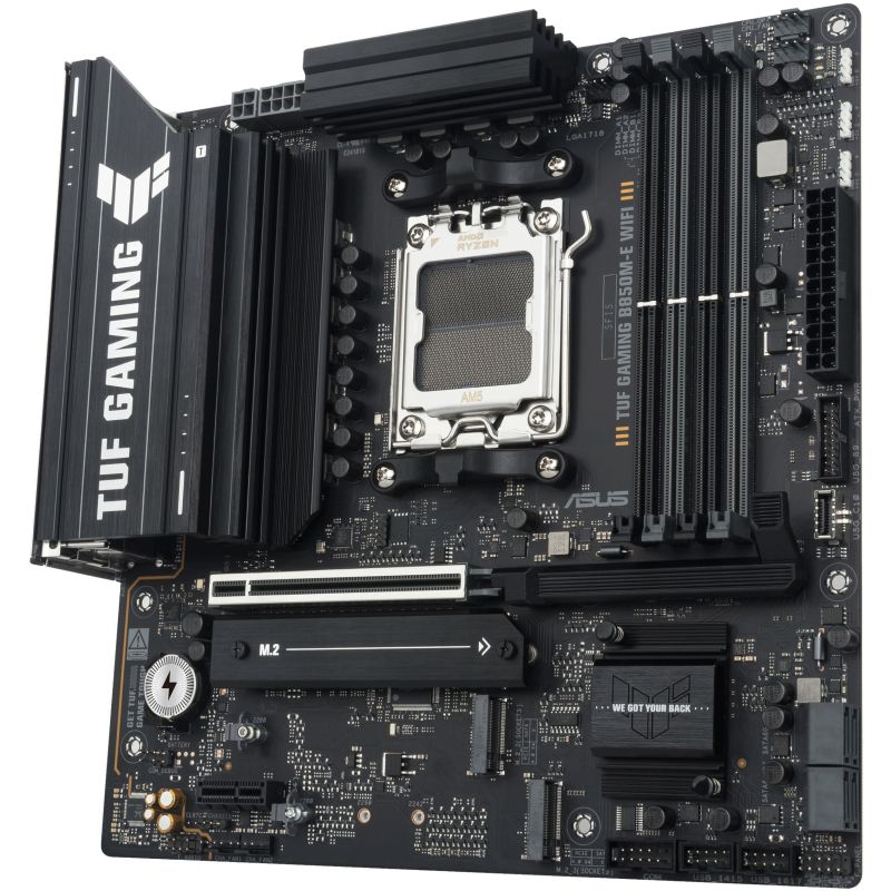 Pllaka amë ASUS TUF GAMING B850M-E WIFI është ndërtuar për qëndrueshmëri dhe performancë të lartë në platformën AM5.