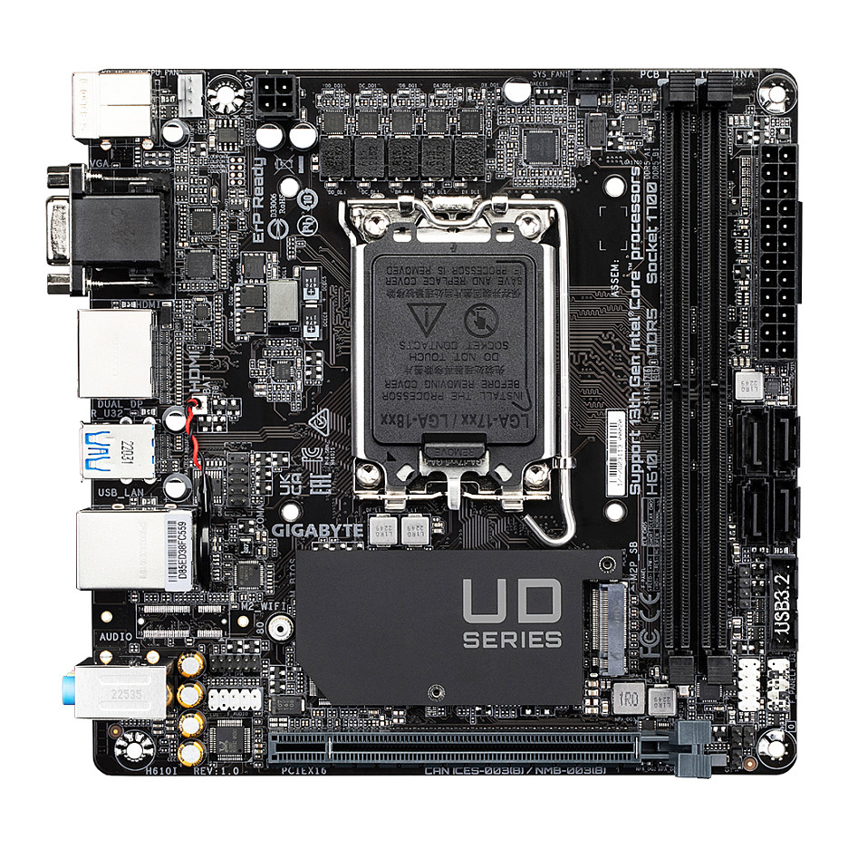 Pllaka amë Gigabyte H610I është një motherboard kompakt për platformën Intel LGA1700, i dizajnuar për ndërtim PC të vogël (SFF – Small Form Factor).