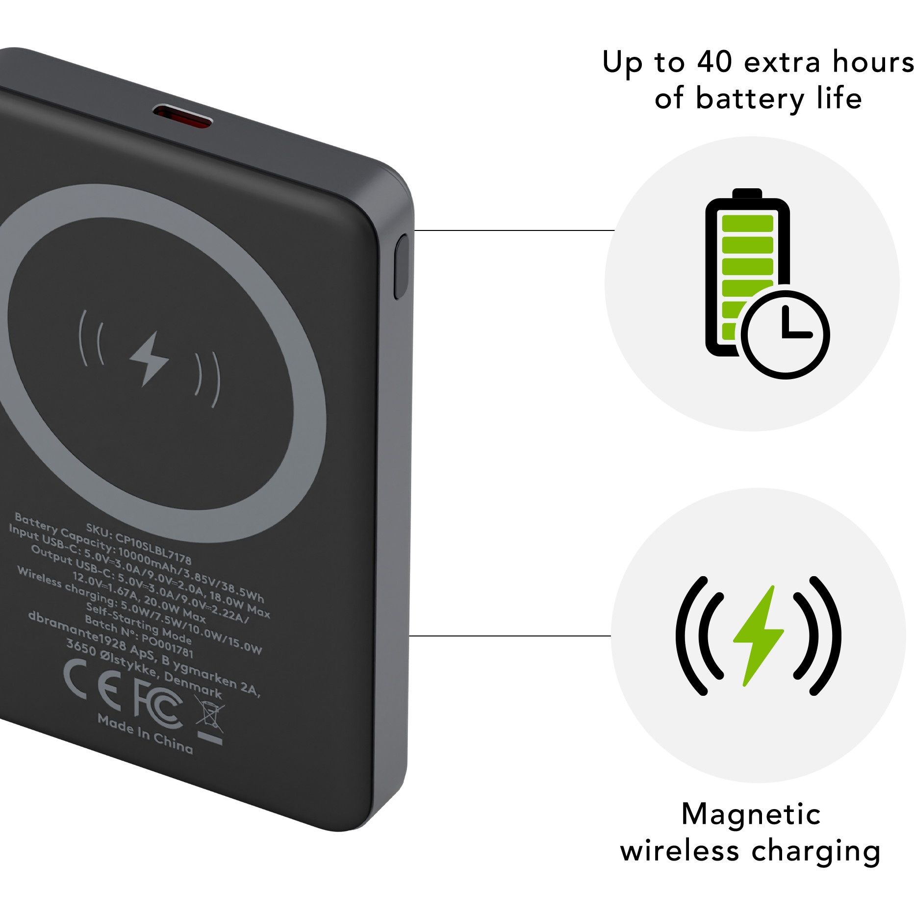Powerbank dbramante1928 10000 mAh / 38.5 Wh / 20W / 3A / 2 Porta / Magnetik – Gri