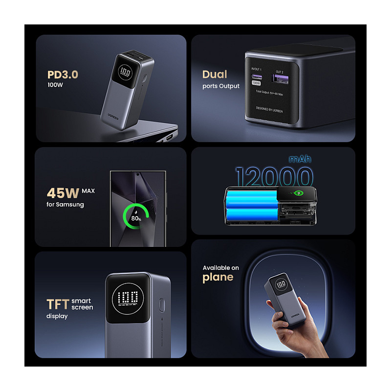 Powerbank Ugreen 12000mAh / 100W Fast Charging – Gri