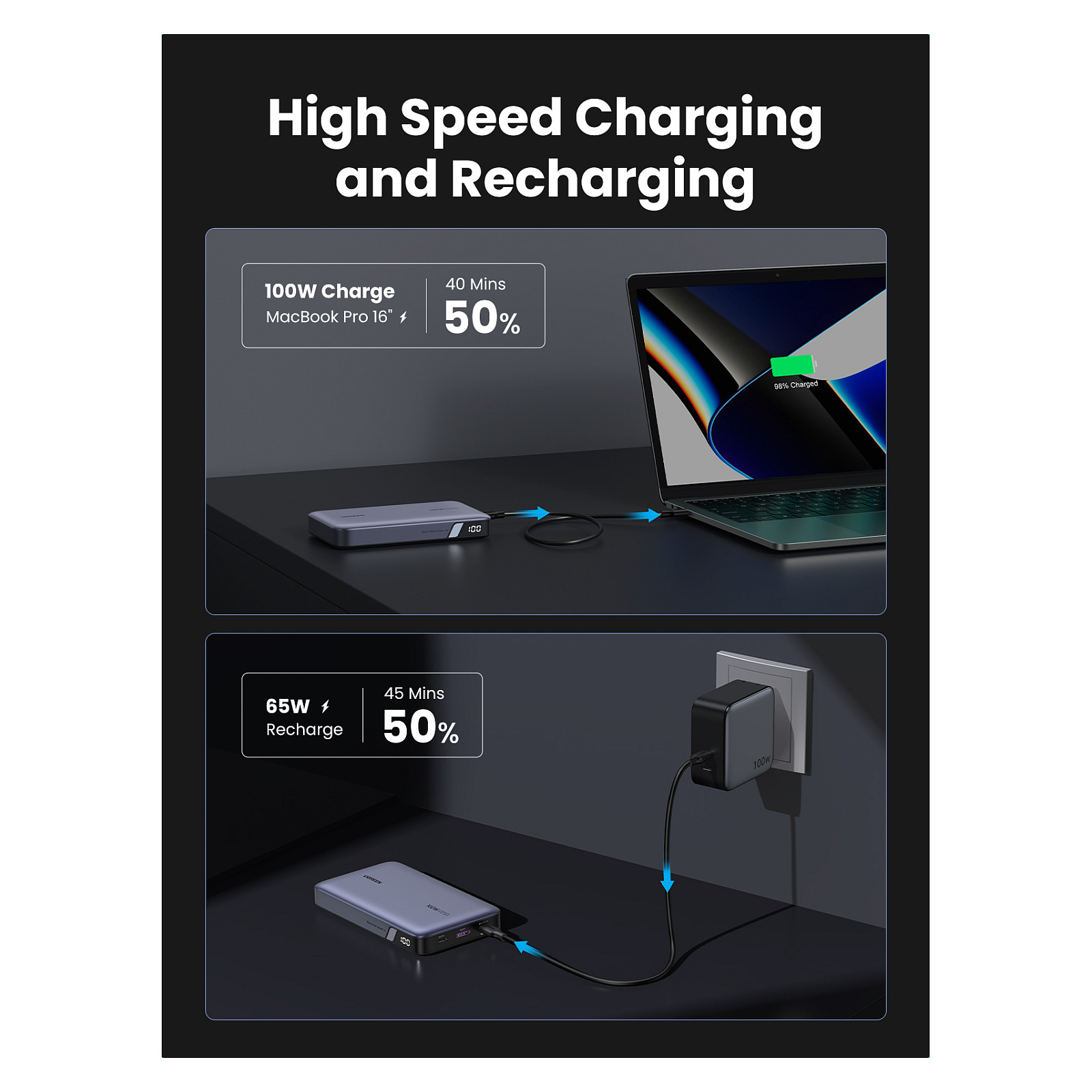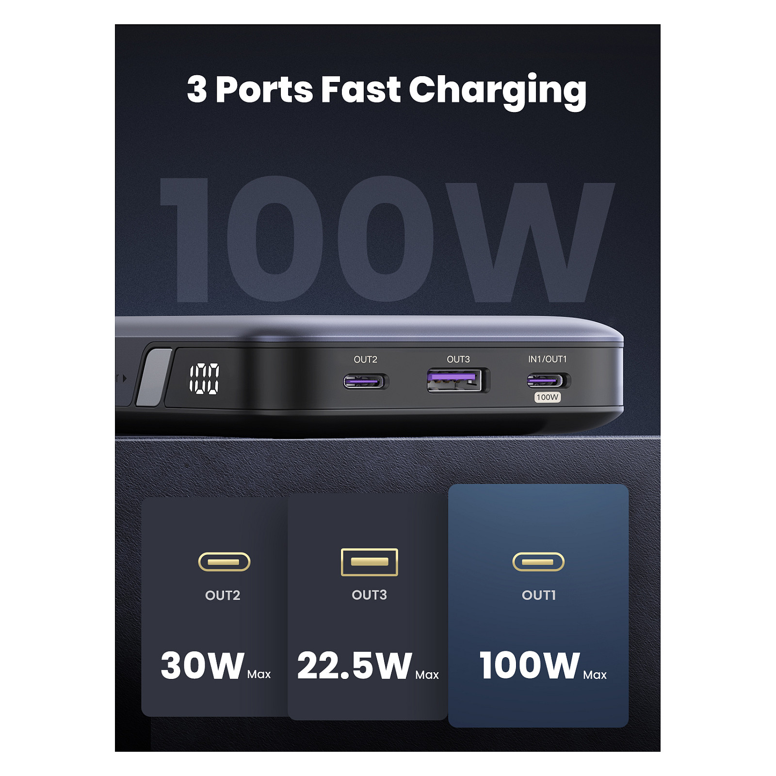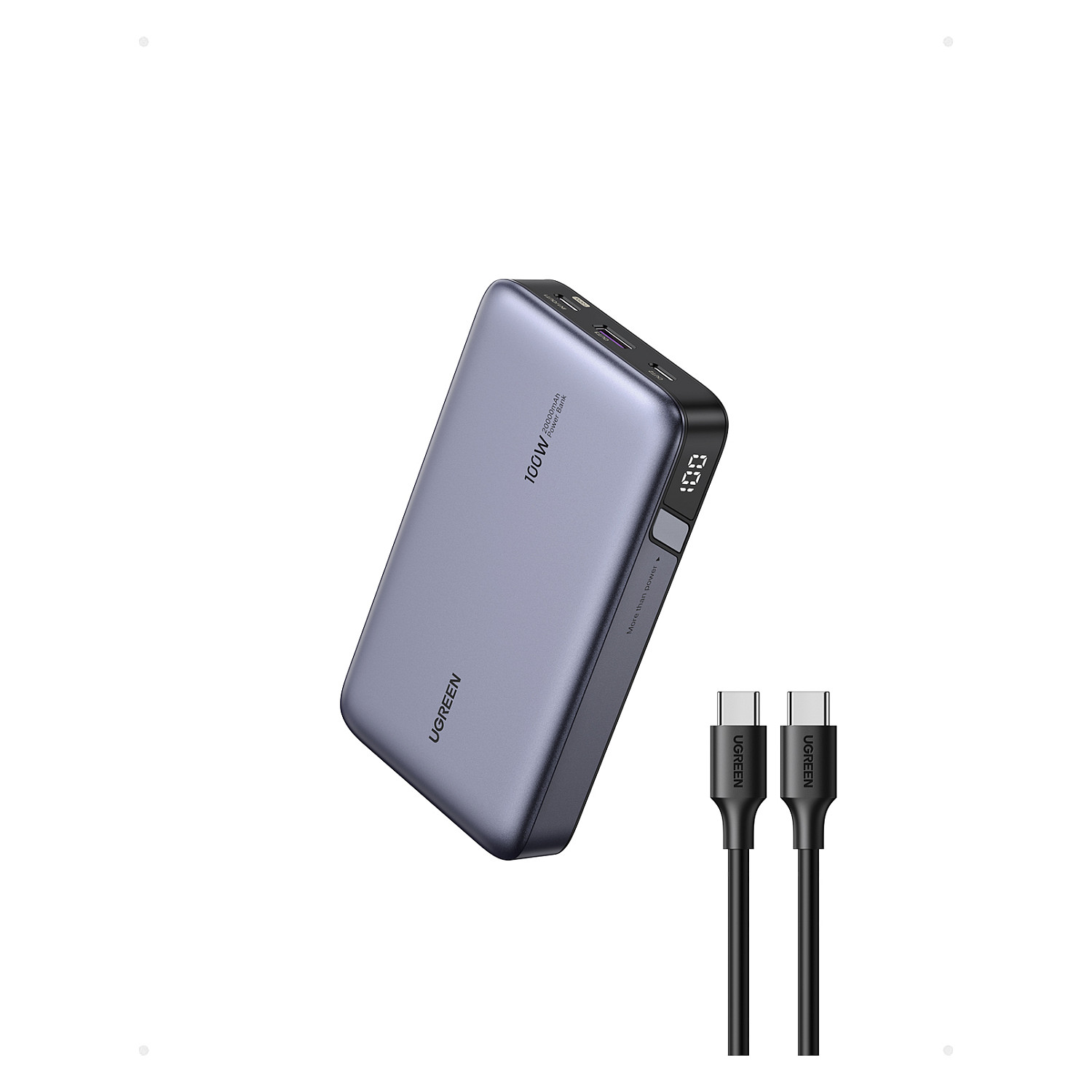 Powerbank Ugreen 20000mAh / PD 100W – Gri është një bateri portative profesionale e krijuar për përdoruesit që kërkojnë karikim të fuqishëm dhe të shpejtë.