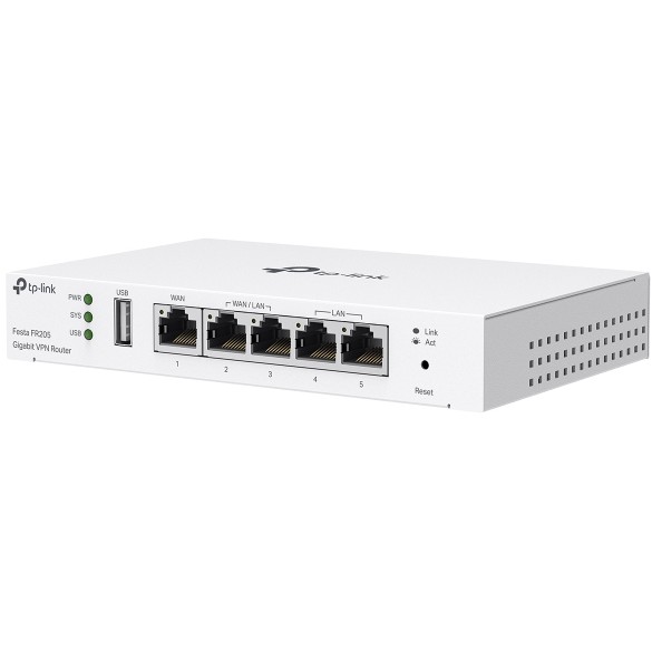Ruter TP‑Link Festa FR205 Gigabit VPN Router është një pajisje e fuqishme për rrjete të sigurta dhe të shpejta.