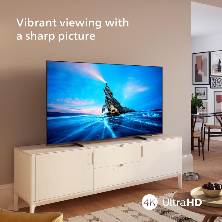 Audio e fuqishme dhe lidhjet HDMI, USB, Wi‑Fi dhe tuner DVB‑T2/C/S2 e bëjnë këtë televizor ideal për përdorim të përditshëm në shtëpi.