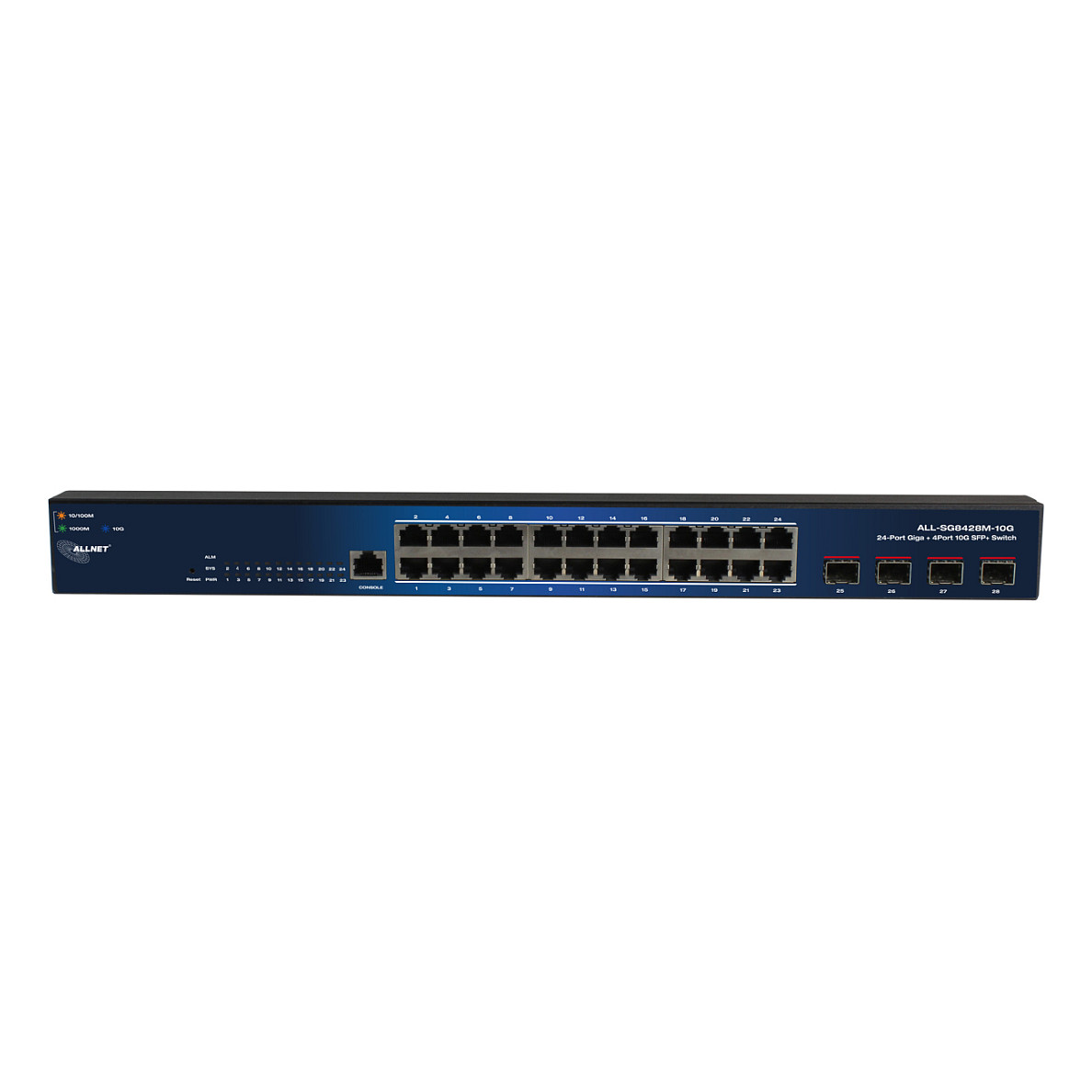 Switch ALLNET Smart Managed Layer 2 / 24-Port / 24x Gigabit LAN / 4x SFP+ 10G / 19″ / Fanless / ALL-SG8428M-10G
