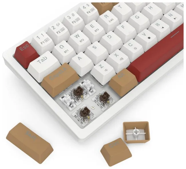 Tastierë Gaming Redragon K677WLR-RGB-PRO Rammus – Bardhë / Kuqe / Kafe