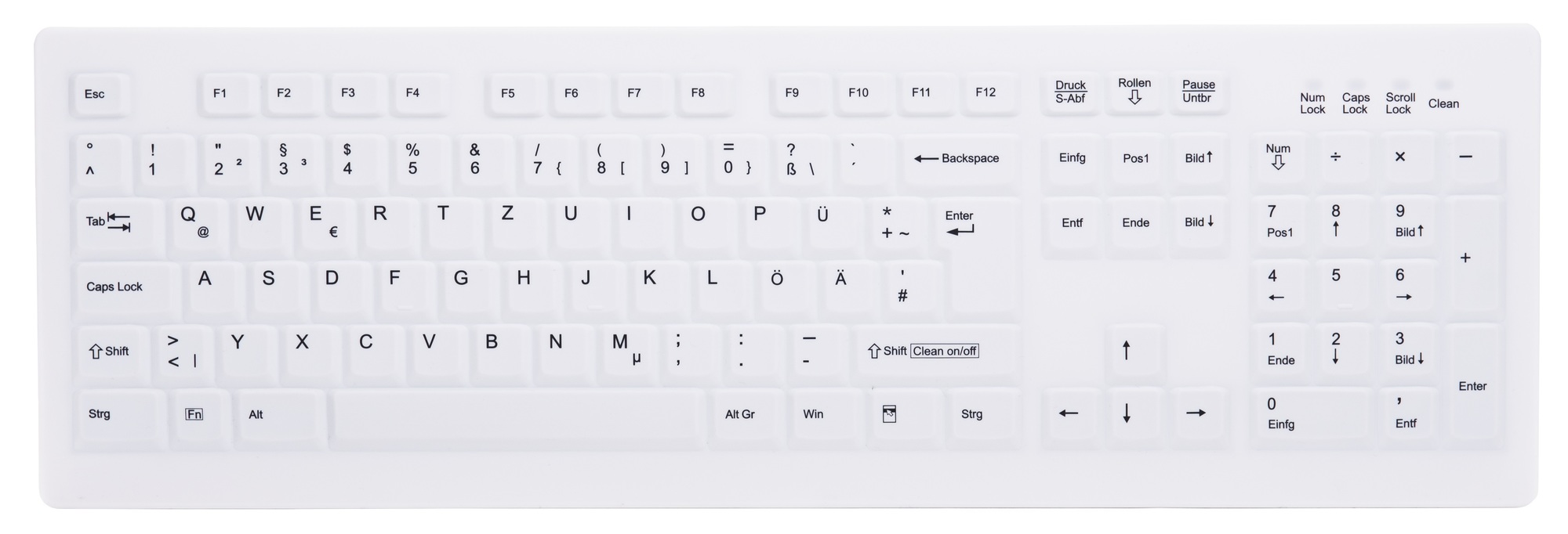 Kjo tastierë profesionale ofron layout standard 105‑çelësh dhe është e plotësisht e mbyllur me klasë IP68 për mbrojtje maksimale kundër pluhurit dhe ujit.