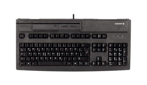 Cherry G83-6104LUNEU-2 është tastierë me kabllo me layout QWERTY US dhe lidhje USB për funksionim të qëndrueshëm.