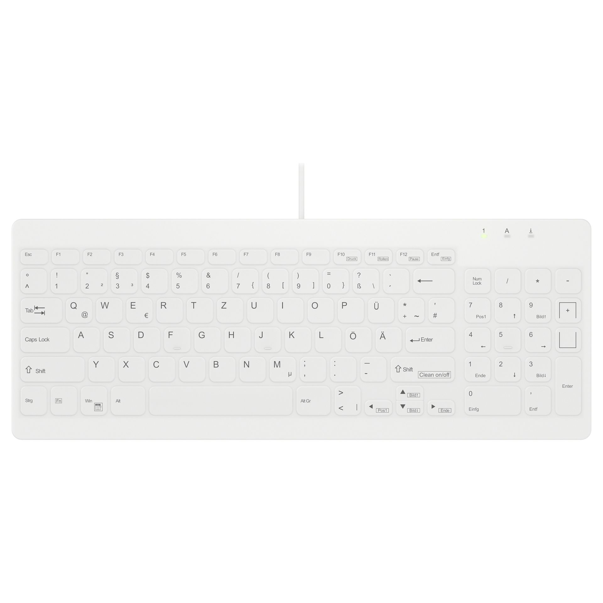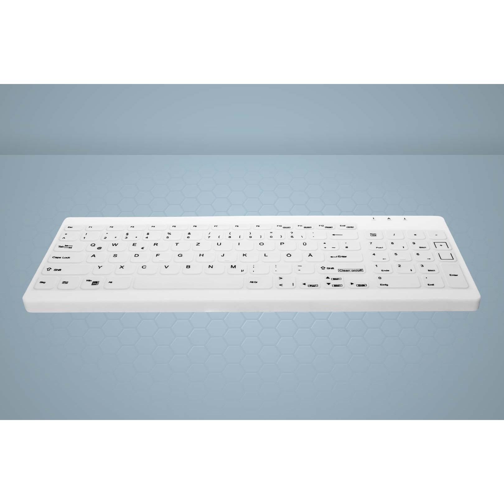 Tastierë me kabllo / Cherry Hygiene Compact Ultraflat / USB / German Layout – Bardhë
