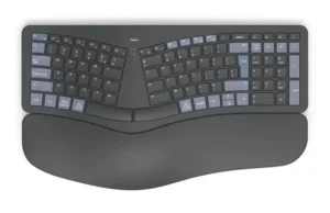 Kjo tastierë pa kabllo ergonomike Hama WK‑900 është projektuar për komoditet gjatë shkrimit të gjatë, duke reduktuar lodhjen e duarve falë dizajnit të ndarë dhe të lakuar.