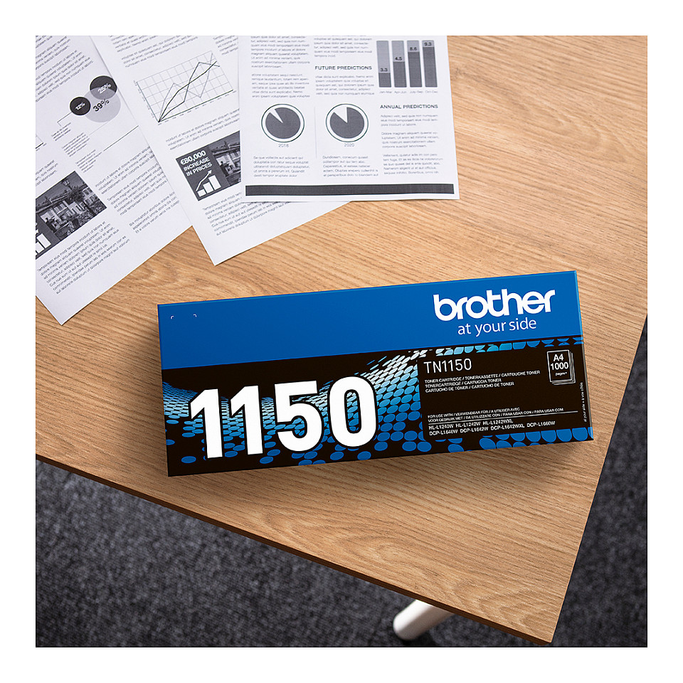 Toner Brother TN-1150 Black Toner ofron printime të zeza të qarta dhe me cilësi të lartë për printerët Brother.