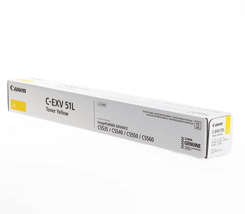 Toner Canon C‑EXV51L / 0487C002 / S – Verdhë është një toner origjinal Canon me ngjyrë të verdhë i projektuar për printime me ngjyra të gjalla, kontrast të fortë dhe detaje të qarta në dokumente dhe materiale grafike.