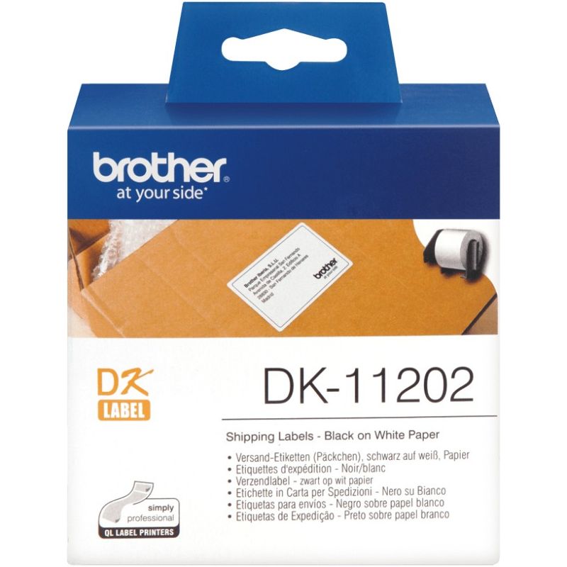 Etiketat Brother DK‑11202 janë rrolla zyrtare me gjerësi 62 mm, të dizajnuara për printerët e etiketave Brother QL.